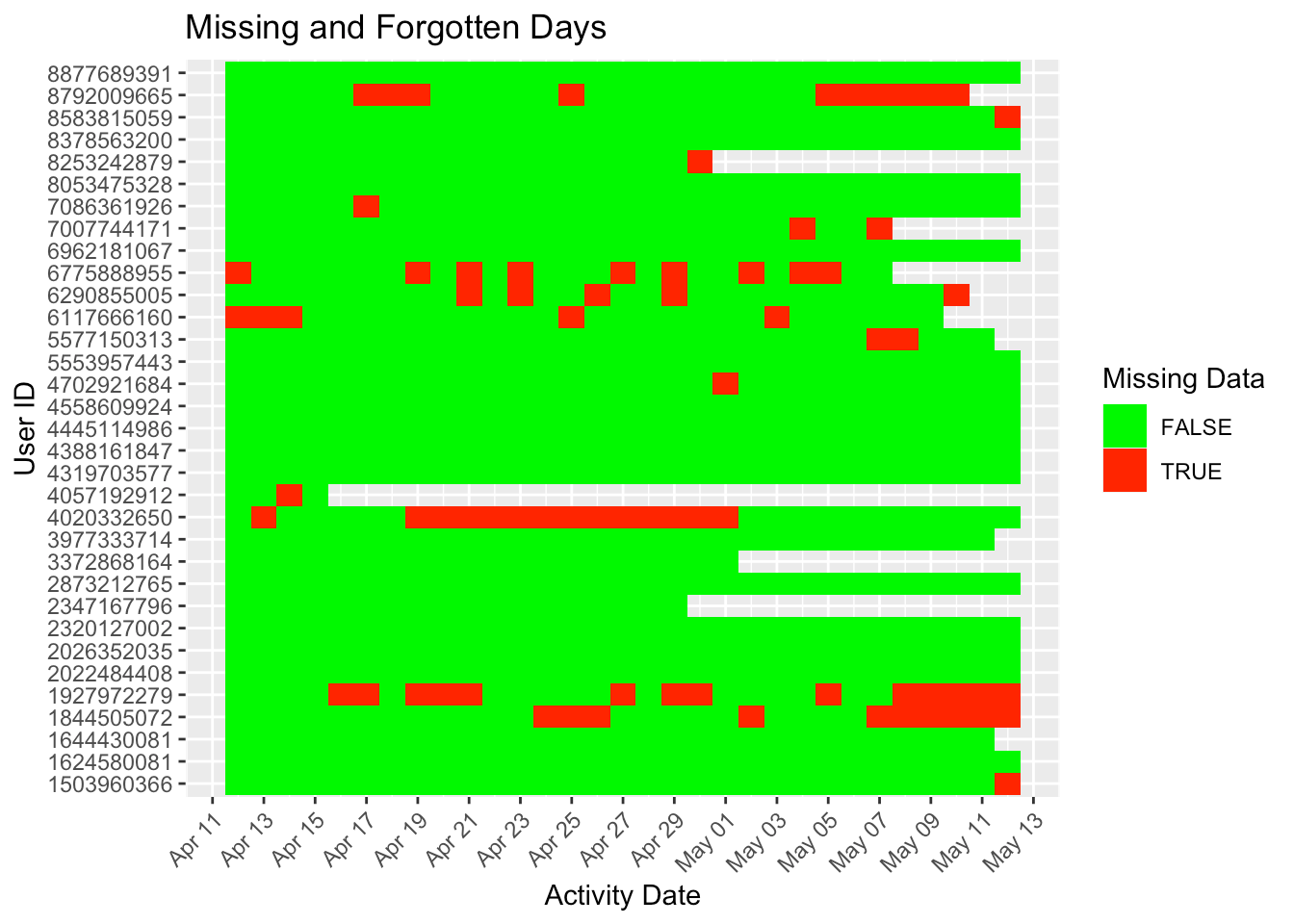 Across the thirty-user dataset, 77 instances of missing data were noted over the month.