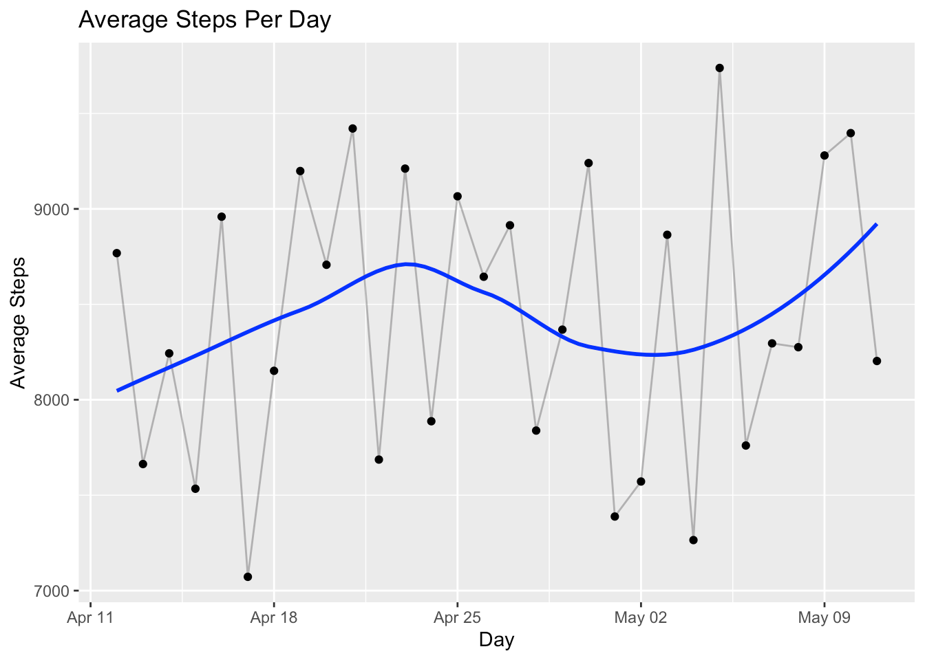 Acknowledging the limited dataset size, it appears that regular device users tend to increase their step count over time, though this could also be influenced by external factors, such as weather improvements from April to May. Further data is needed to statistically validate the trend.