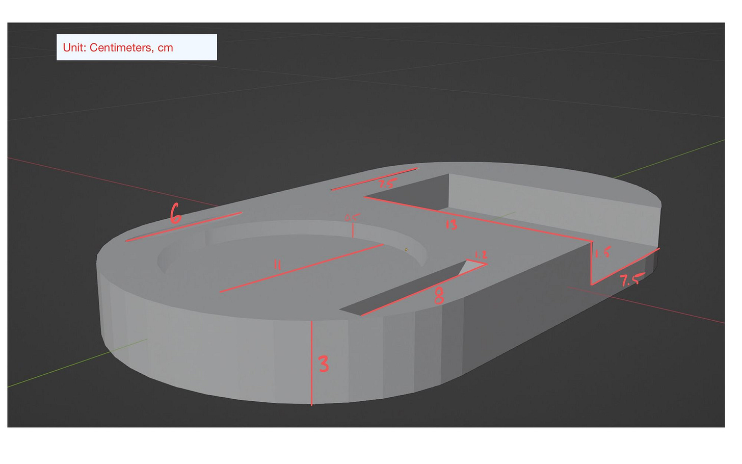 At this point, I learned that Blender isn't the ideal tool for this kind of work. The machine requires a specific type of file, at minimum a vector image. Luckily, Derek simplified the process by requesting screenshots with measurements.