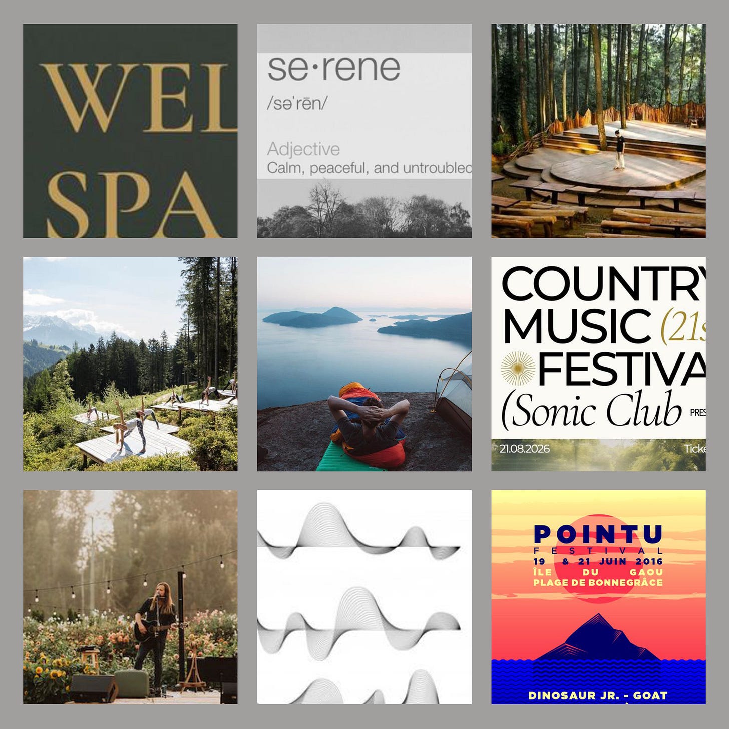 I won't write too much about it here, but the basic idea was a chill, indie music festival overlooking the beautiful Howe Sound. Below, you'll find my mood board, colour palette, and the website design, which I created using Affinity Designer 2. I've also included a festival poster and some wristband mockups.