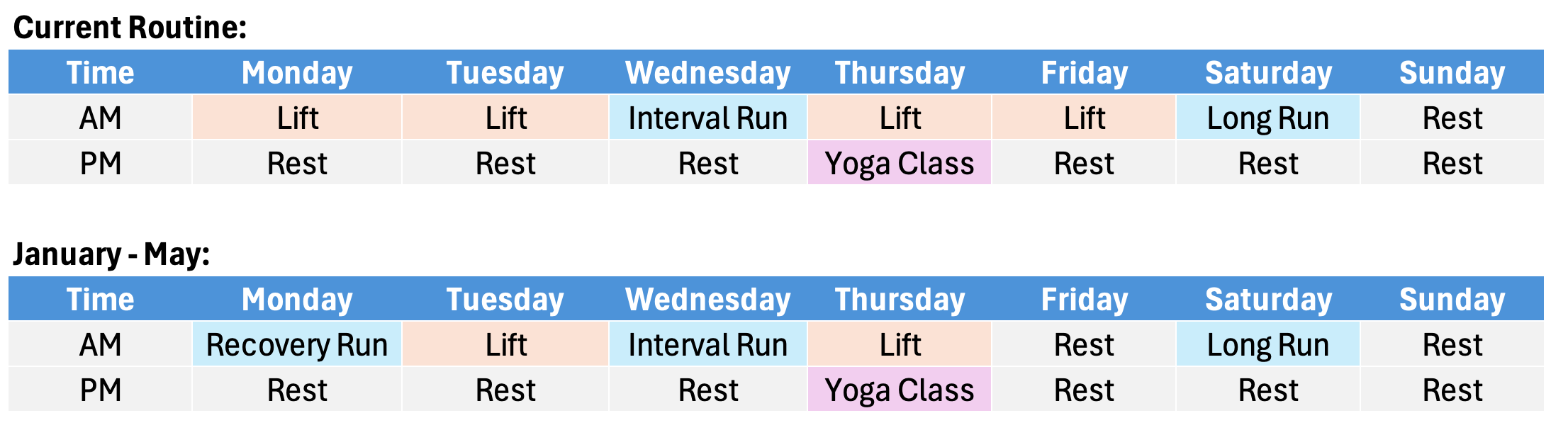 One lifting session has been replaced with an extra run. One lifting session has been removed entirely in place of some extra rest and recovery.