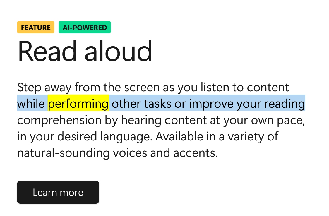 I tested a few RWL browser extensions, like Speechify and Text to Speech, but they were either expensive or of lower quality, respectively. Then I discovered Microsoft's free Read Aloud tool.